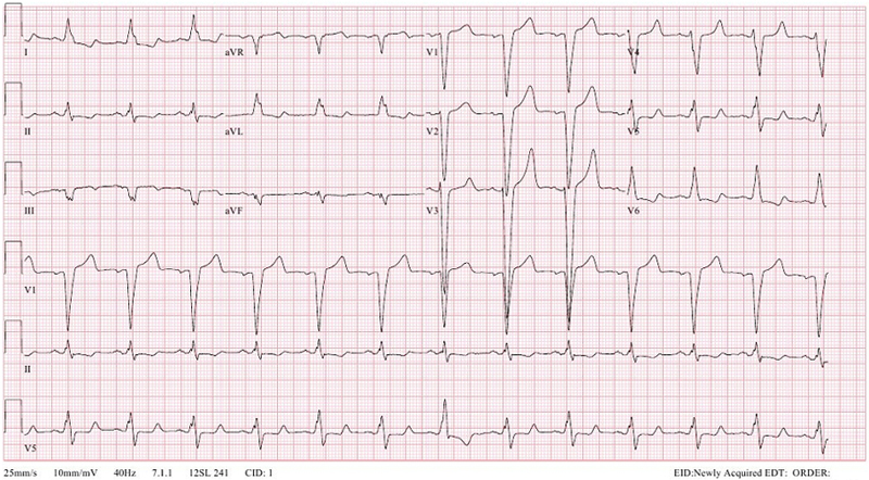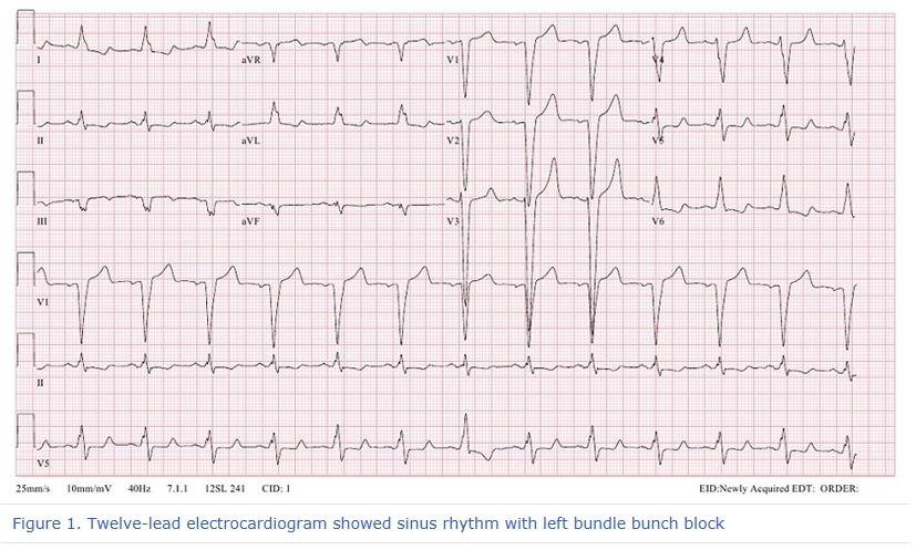 Figure 1. Twelve-lead electrocardiogram showed sinus rhythm with left bundle bunch block |